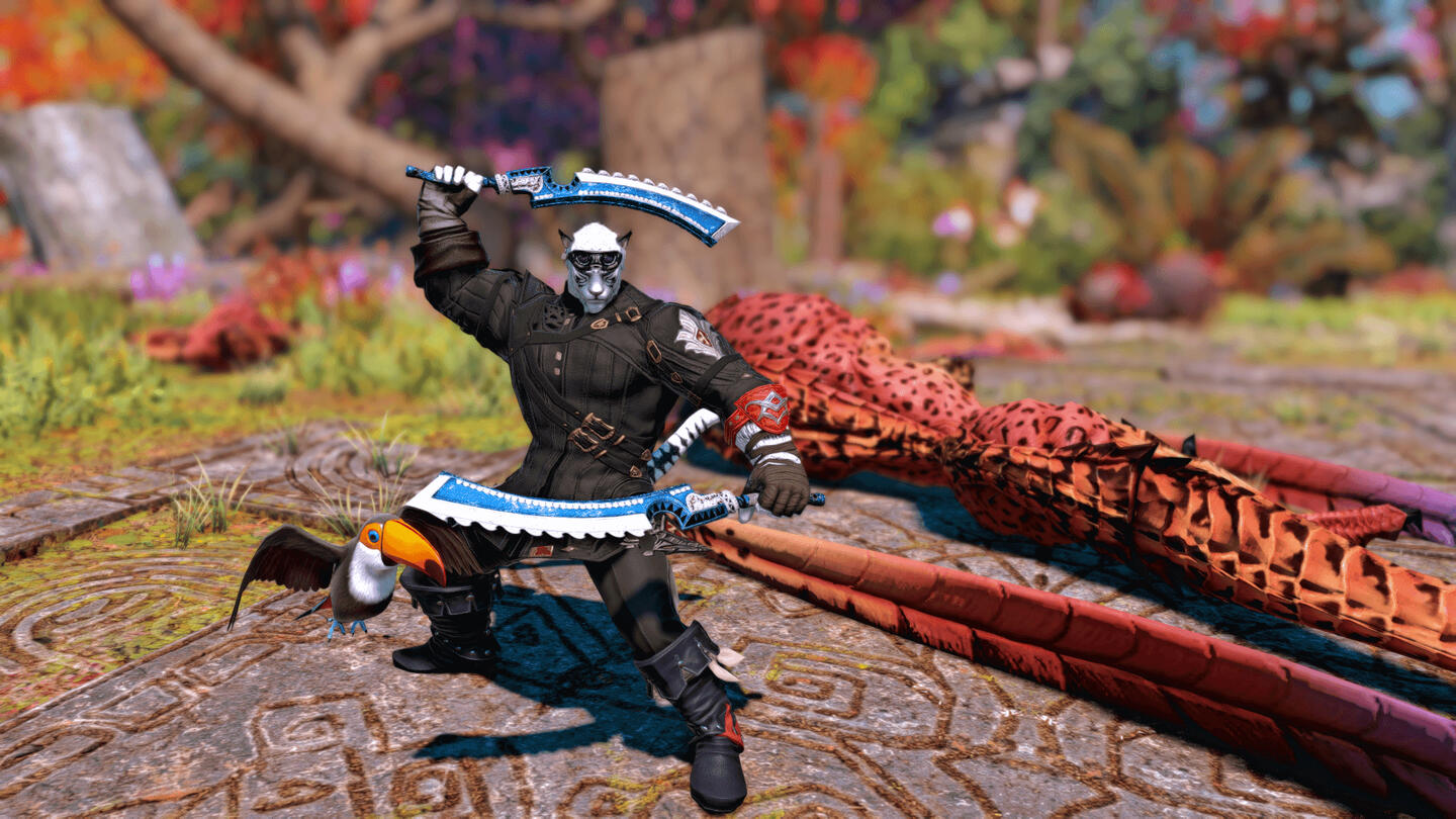 Br'uk Roh spent the majority of his youth training in the ways of the Viper. His father was a Viper, his father's father was a Viper, the training and legacy handed down from one generation to the next. Spending his time between hunts on the beach, a bonafide surf bum, his life was indeed a peaceful one in a veritable paradise, wanting for nothing. He was a Xbr'aal living a privileged life of peace and good eats until it all came crashing down.When Tuliyollal came under attack by an army of unknown mechanical monstrosities he watched as friends and family (including his elderly father) were struck down by metal soldiers - but from where!? Who could have created such things, and why would they send them after the peacful denizens of Tural? Roh'a had no idea what to make of it, but one thing was for sure: he'd be damned if he was going to stand idle while his home and his loved ones were attacked!Picking up the nearest weapon at hand, a giant axe, Roh set forth to confront the attackers, slaying at least a score of them, and joining with the other defenders, managed to stave off the worst of the attack. With strange flying ships hovering menacingly over Tuliyollal, Br'uk Roh prepared for the worst, yet nothing came for days. The city was cleaned and fortifications established. When the skyships indeed let loose their terrible cargo Roh'a was there to defend his home with the rest of the Landsguard.In the days and weeks that followed these terrible events Br'uk Roh set forth on a journey of self-discovery, first his travels took him to the summit of Worqor Zormor where he honed his skills with the axe, learning to better defend his allies in the process. After many months living off the land and training every day Roh'a returned to Tuliyollal, but instead of resuming his life as a beach bum he booked passage across the salt in search of adventure, work, and his own self. As of this writing, Br'uk Roh has been a visitor to Eorzea's shores for a scant two weeks.